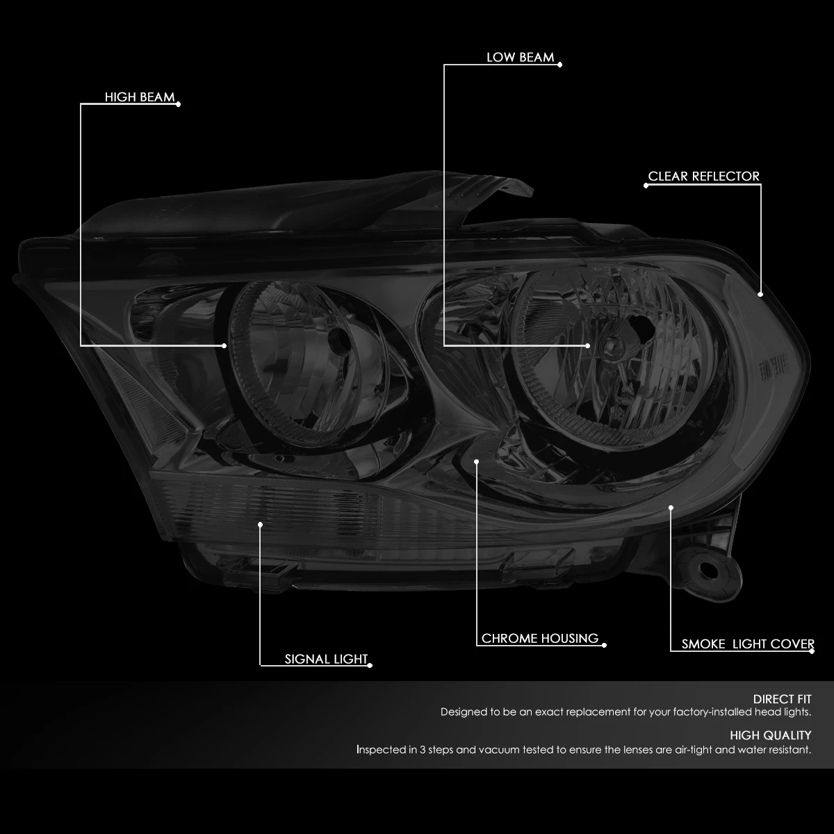 Headlights are one of the most important components of your vehicle; they allow you to see the road in front of you clearly during the night and in any bad weather that may arise. Factory replacement headlights offer an alternate solution than buying expensive factory headlights from dealership. Our replacement headlights meet each OE specification and standards. Replacement headlights are easy to install, and feature plug and play installation using existing screw hole of the factory unit. Each headlights are made with polycarbonate plastic lens, which is Anti-Fog treated to prevent yellowing or oxidation.