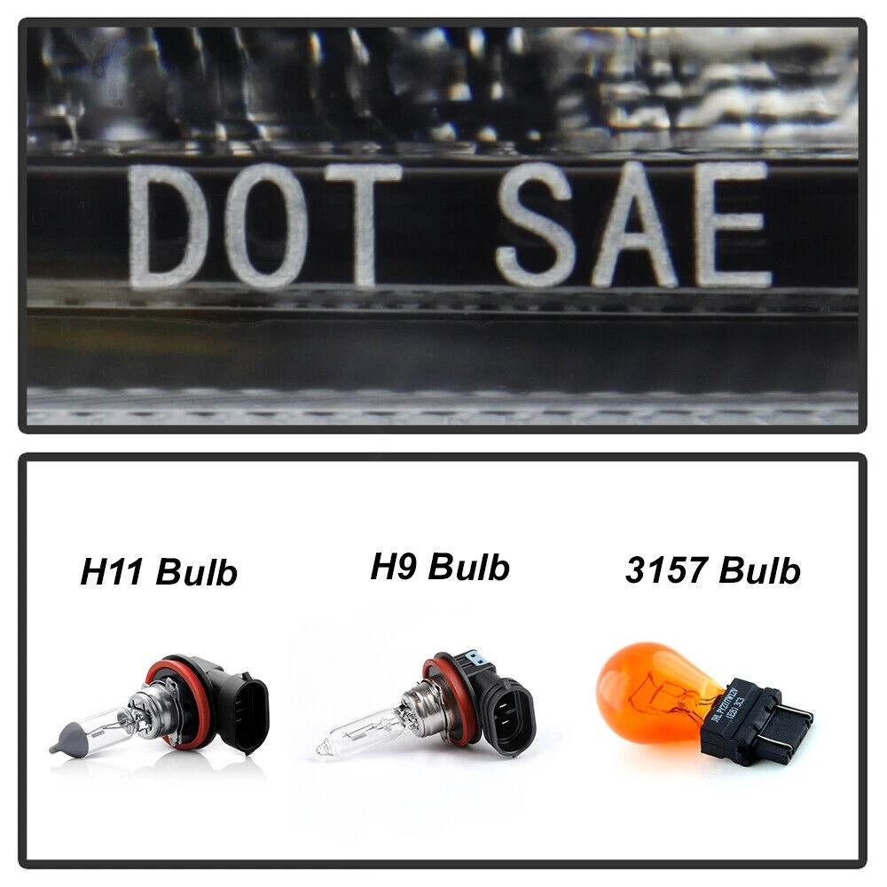 - Bulb Sizes (Included): Low Beam: H11 | High Beam: H9 | Turn Signal: 3157 | Parking: 3157