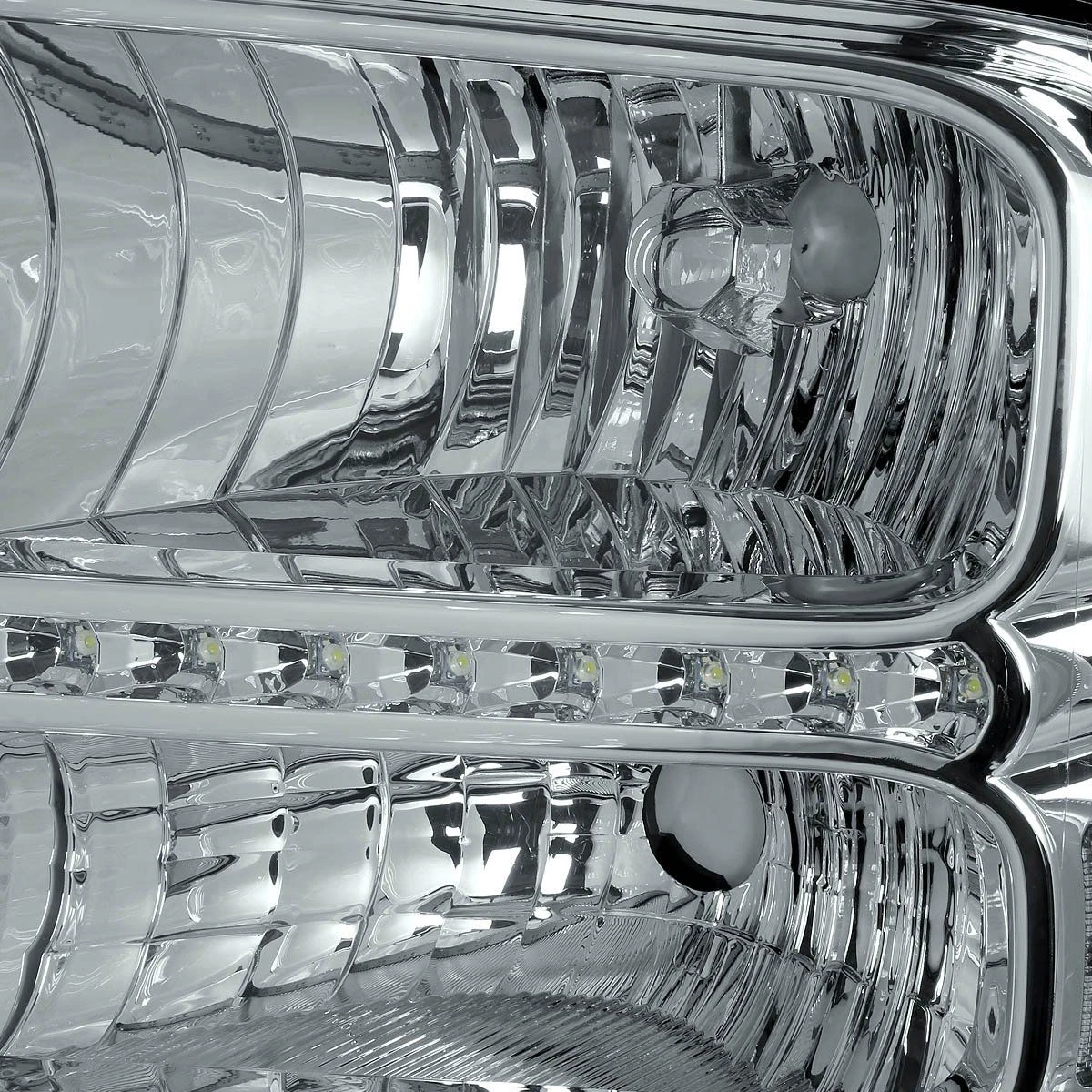 - Chrome housing with clear lens
